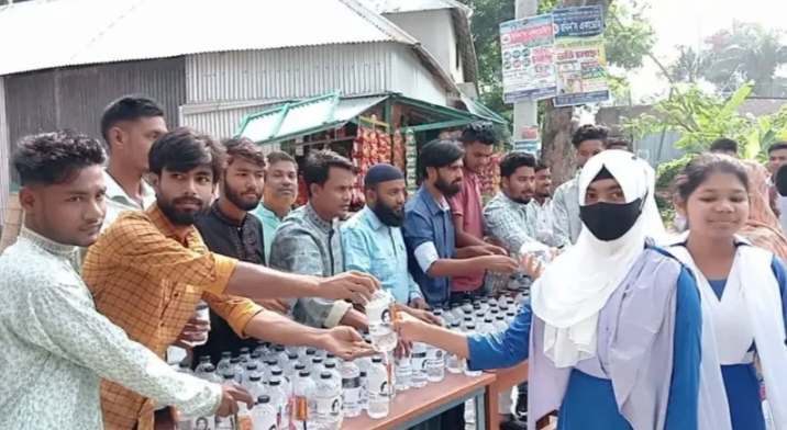 সালথায় ছাত্রদলের পক্ষ থেকে এসএসসি পরীক্ষার্থীদের স্যালাইন পানি ও কলম বিতরণ