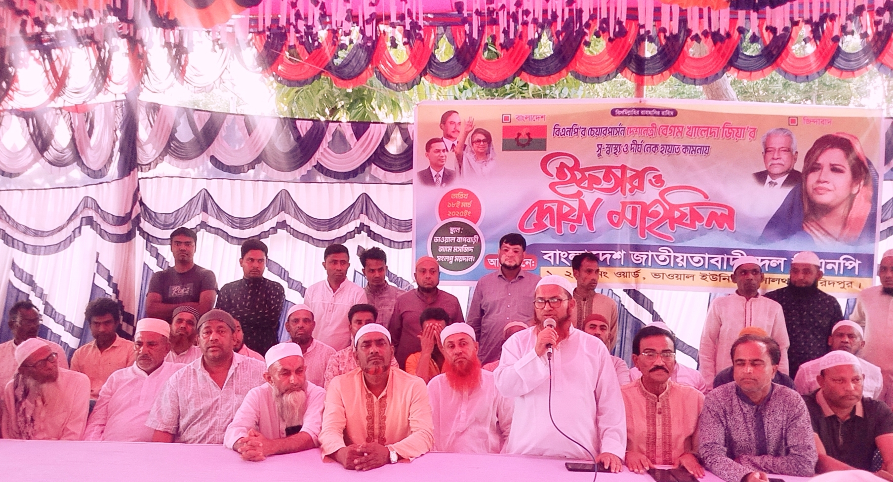 সালথায় বেগম খালেদা জিয়ার সুস্বাস্থ্য কামনায় ইফতার ও দোয়া মাহফিল
